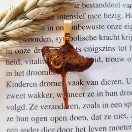 De sieraden worden handgemaakt met epoxy en natuurlijke materialen zoals de zelfgeplukte en gedroogde bloemen uit alle seizoenen, blaadjes, edelstenen, paddestoelen, schelpjes, vlinders en andere materialen. Ik verwerk vaak strassteentjes of pareltjes in de sieradenhangers.